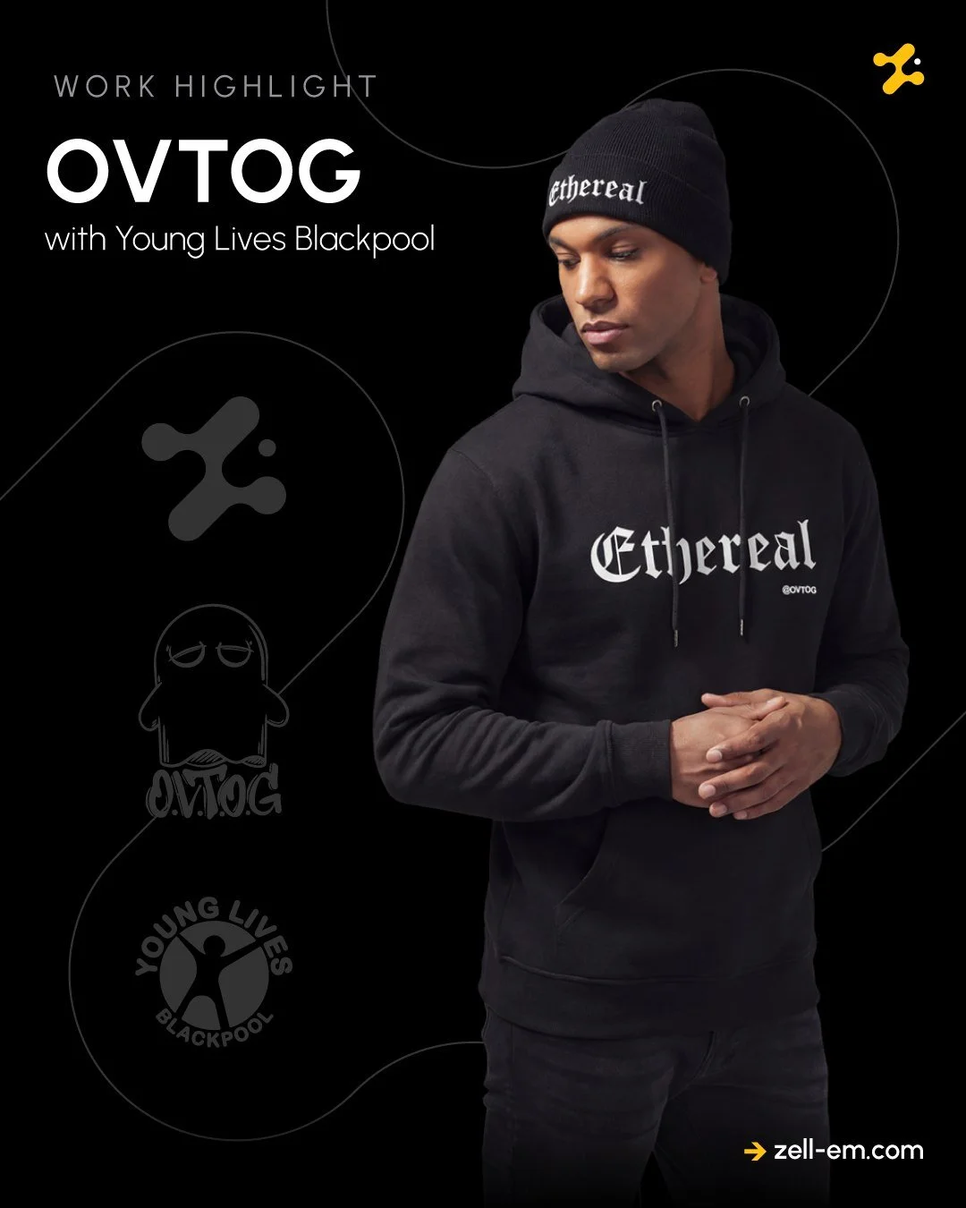 Wear the essential hoodie for the start of our 2026 campaign with Ethereal@ovtog. This stunning embroidered hoodie comes in black only and is the launch of our 2026 season. It has a hood and toggle fasteners plus a front comfort pouch (Pocket). All our profits support social good in our youth community and we hope soon yours too. Wear the Hoodie and be the difference.